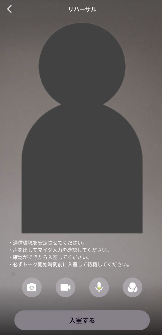 トーク開始時間の10分前から、実際のビデオトーク画面へ入室いただけます。